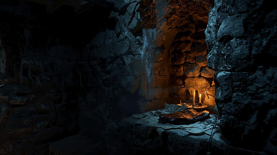 the plaster puckered, breathing in, the air tasting of cellar ash,