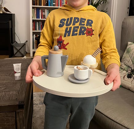 My 5 yo has been serving me cupcakes and coffee all afternoon. Luxurious.