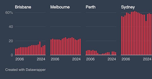 Data shows they've become less Sydney-centric while Melbourne has felt the love thanks to Jetstar. Real story though is how they've come to love Brisbane!