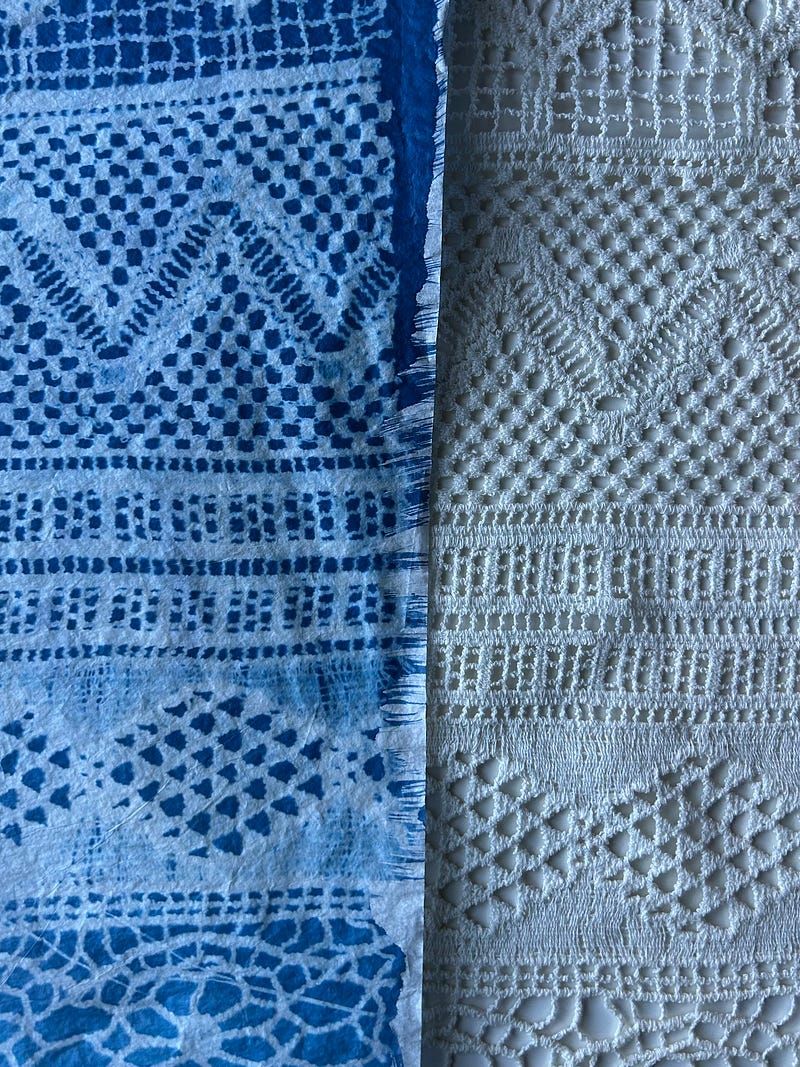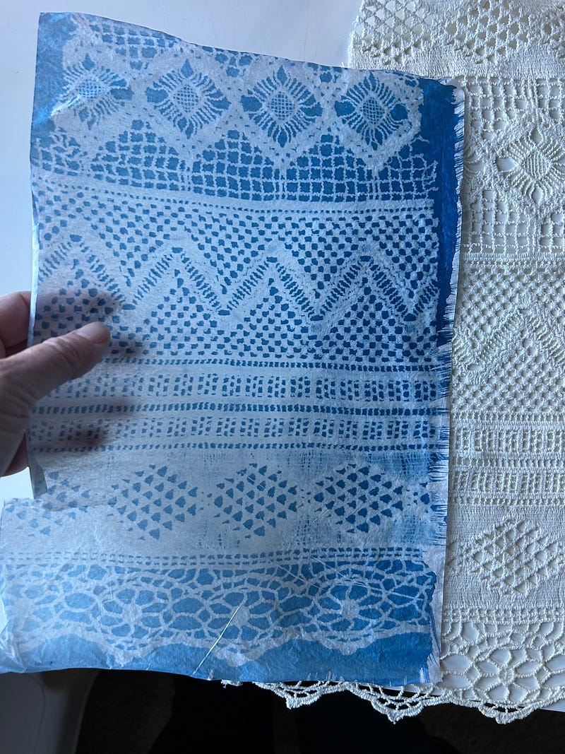 I’m loving how this turned out! Cyanotype using lace on tissue.