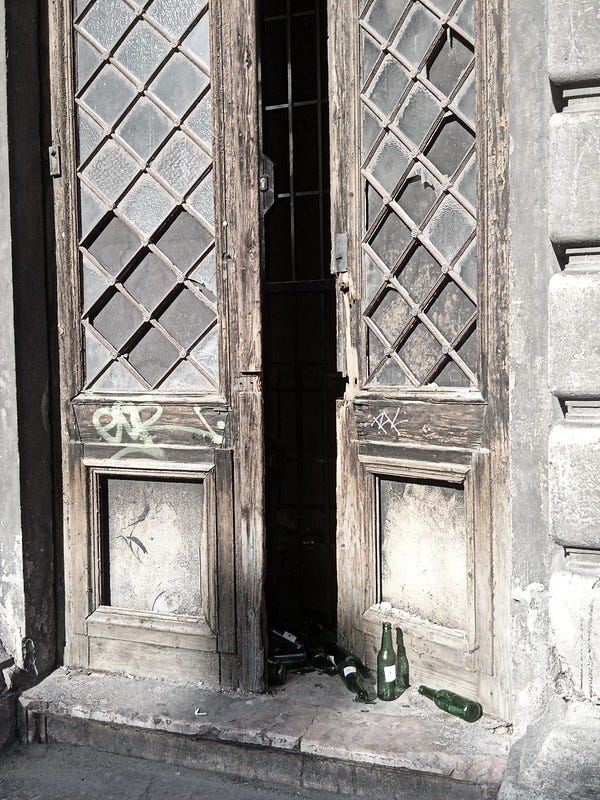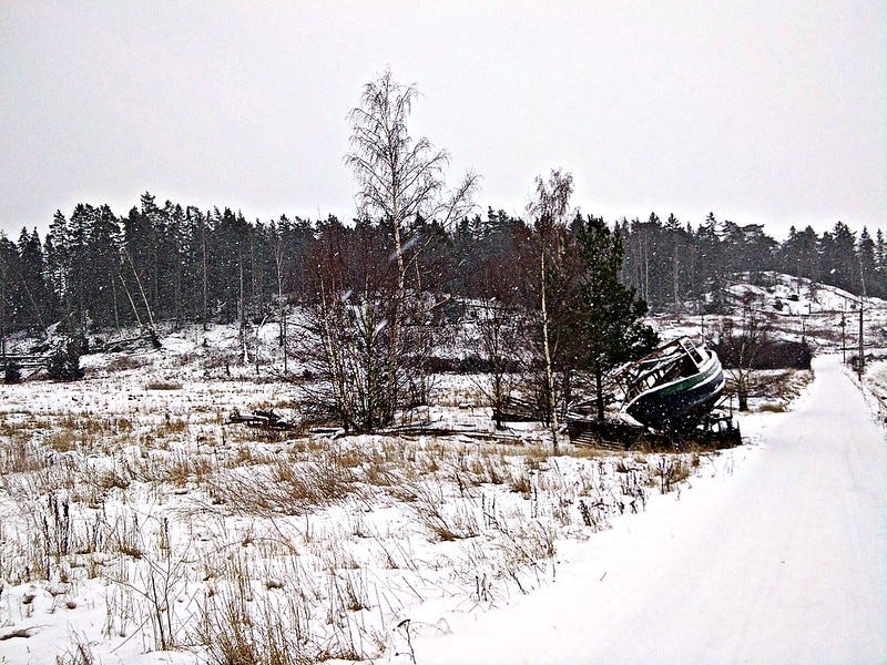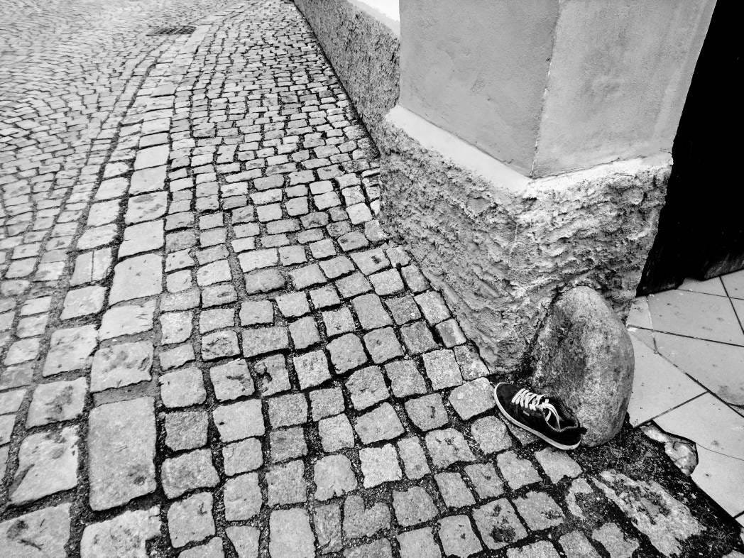 A shoe in Cesky Krumlov (CZ) and one in Stockholm (SE), abandoned ship on Färingsö Island (SE) and after party in Budapest (HU)