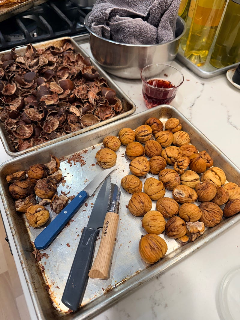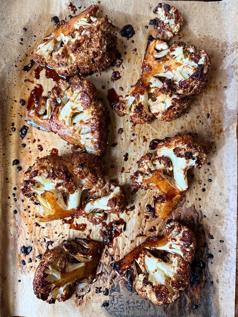 It’s grey and foggy today so I turned on the oven to roast chestnuts and one of my favorite recipes from Ever-Green Vietnamese, char siu cauliflower. Meanwhile on the other side of the country, Susan Marquis baked up my mapo tofu mac and cheese from PTFS. It’s the season for turning on our lovin’ ovens! What’s going on in yours?