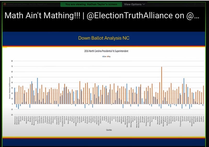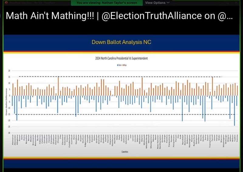 Yet, apparently Kamala Harris, across every one of a 100 districts across NC, got an average 5-10% less than the Democratic State School Superintendent, while Doddy Trump got a similar amount above the Republican candidate. There wasn’t one district where Kamala Harris got more or Trump got less.