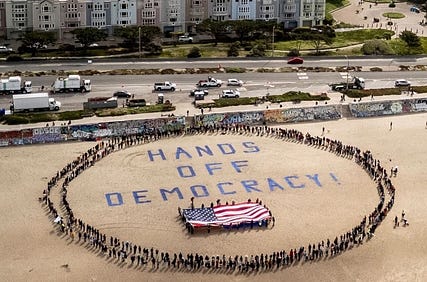 Beautiful photo from yesterday’s “Hands Off!” protest at Ocean Beach in San Francisco