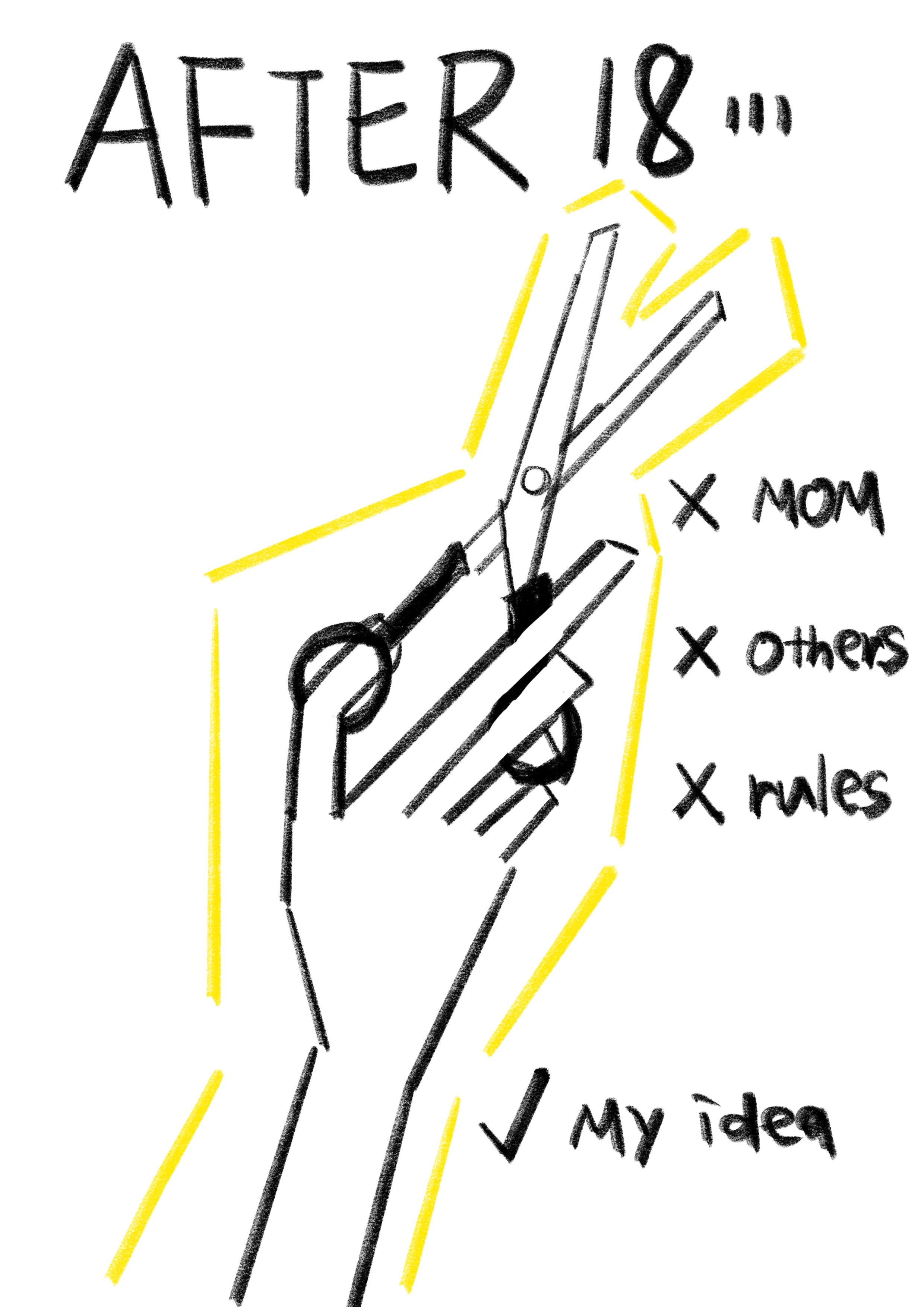 I start from my desire to have a special hairstyle so that be the most special one among people. Then I talk about three stages in my life: when I was 6 years old, during adolescence, and in high school. In these times my hair was influenced a lot by outside factors. After that I compare with my adult life. I can choose my own hairstyle which means I also take responsibility for my life.