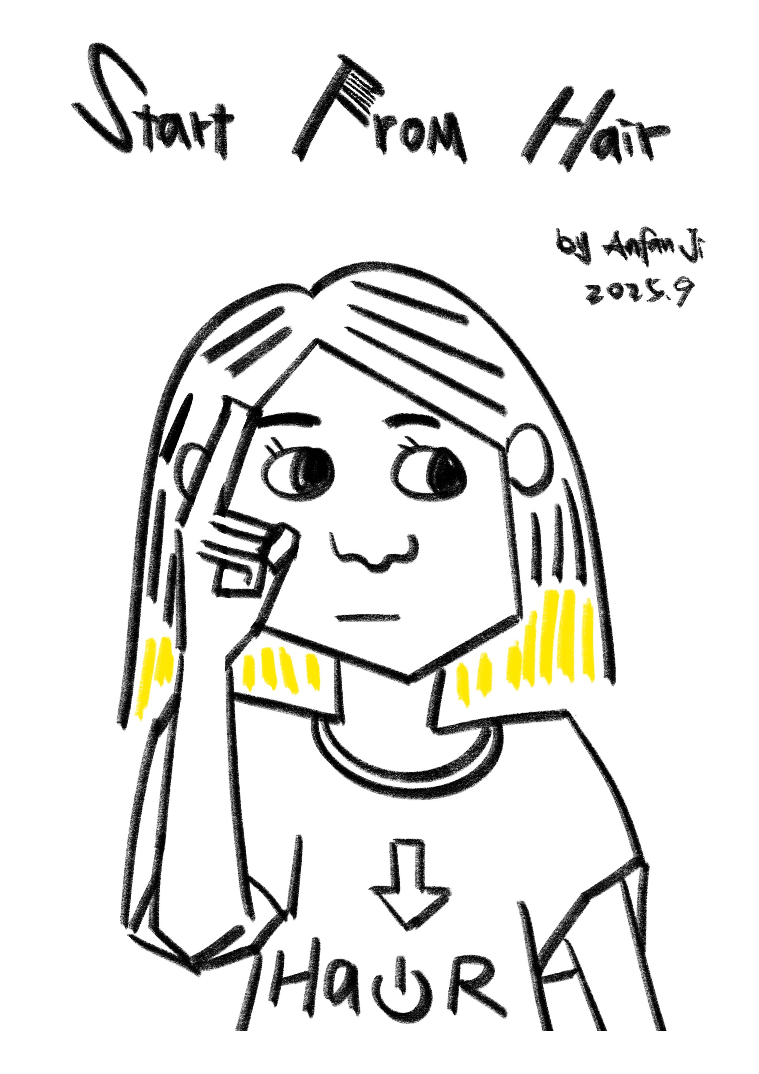 This is an online zine I made in Procreate, and I use Heyzine flip function to show it. It is a visual companion for my essay Start from Hair.