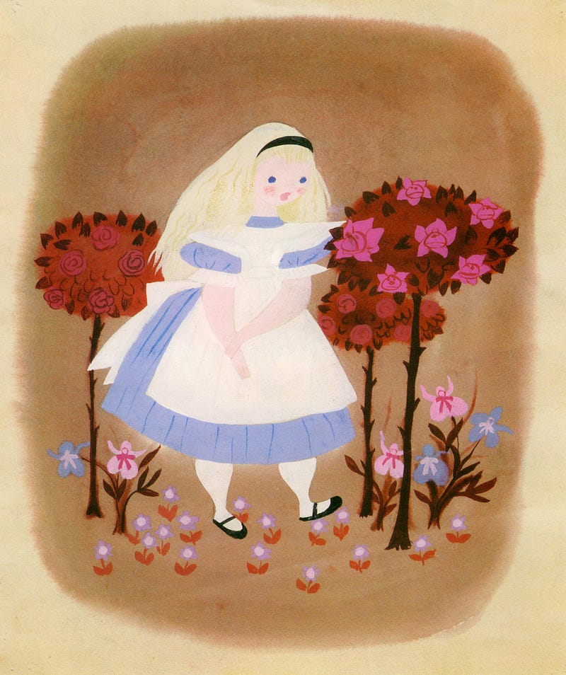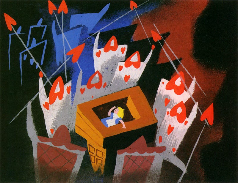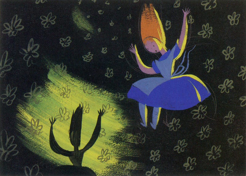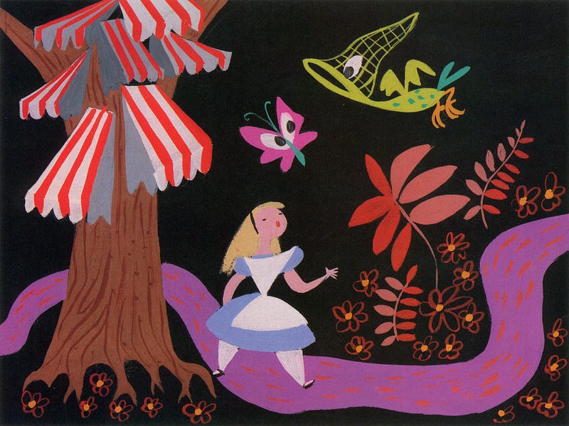 Concept art by Mary Blair for Alice in Wonderland (1951).