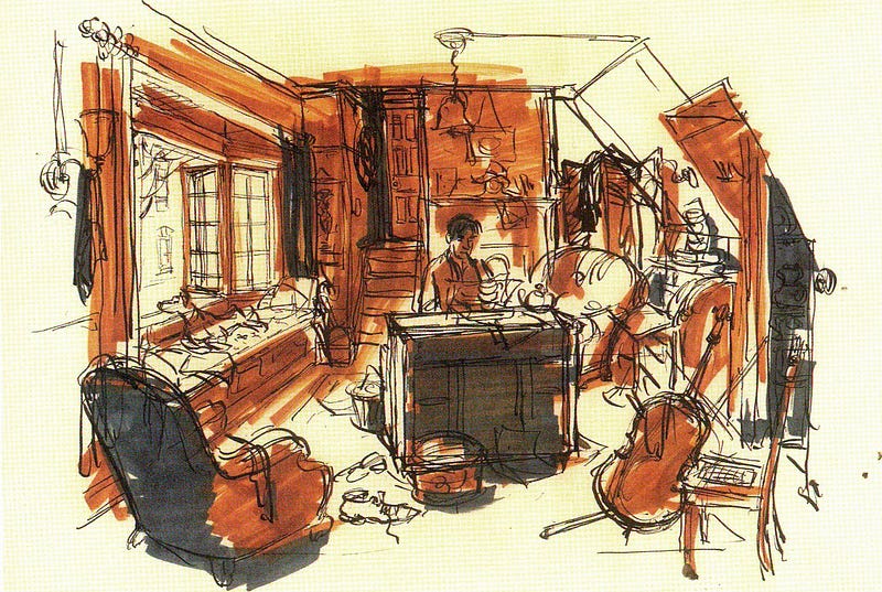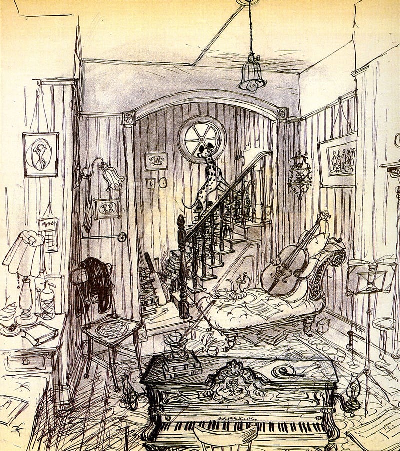 Concept art by Ken Anderson (1909–1993) for Disney’s One Hundred and One Dalmatians.