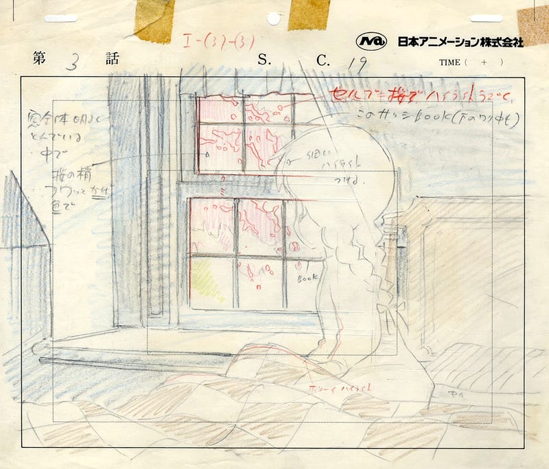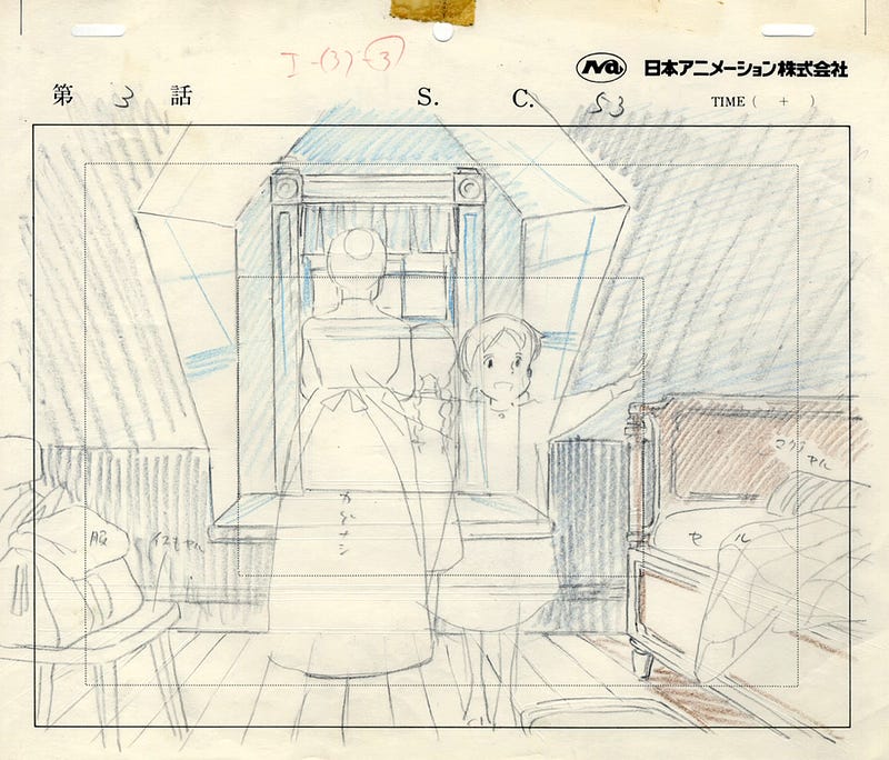 Layout sketches by Hayao Miyazaki for Anne of Green Gables (1979).