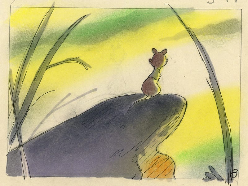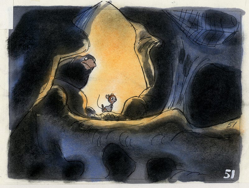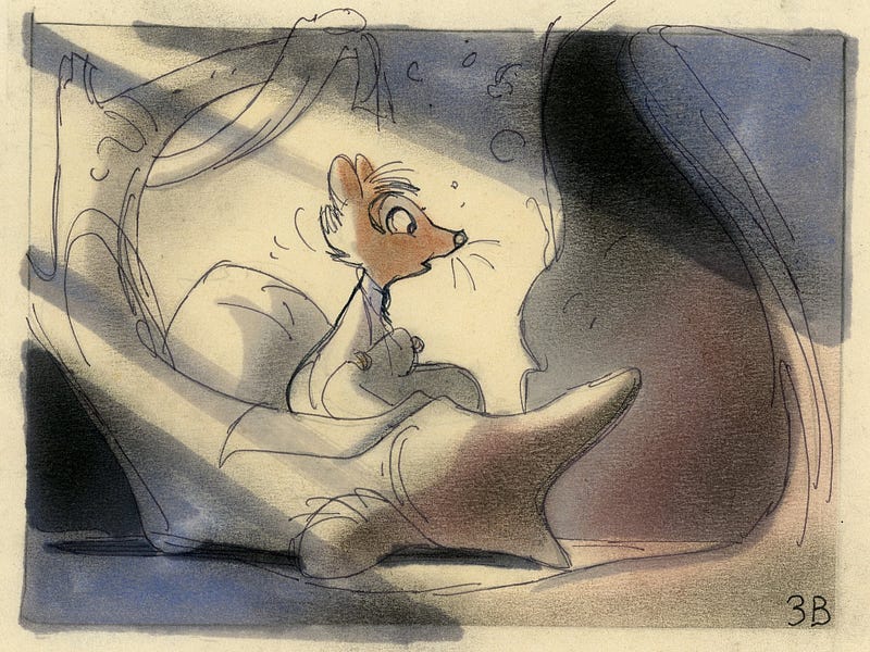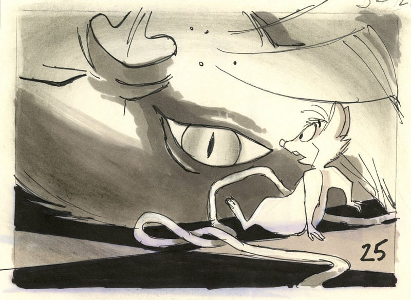 Storyboard sketches by Don Bluth for The Secret of NIMH (1982).