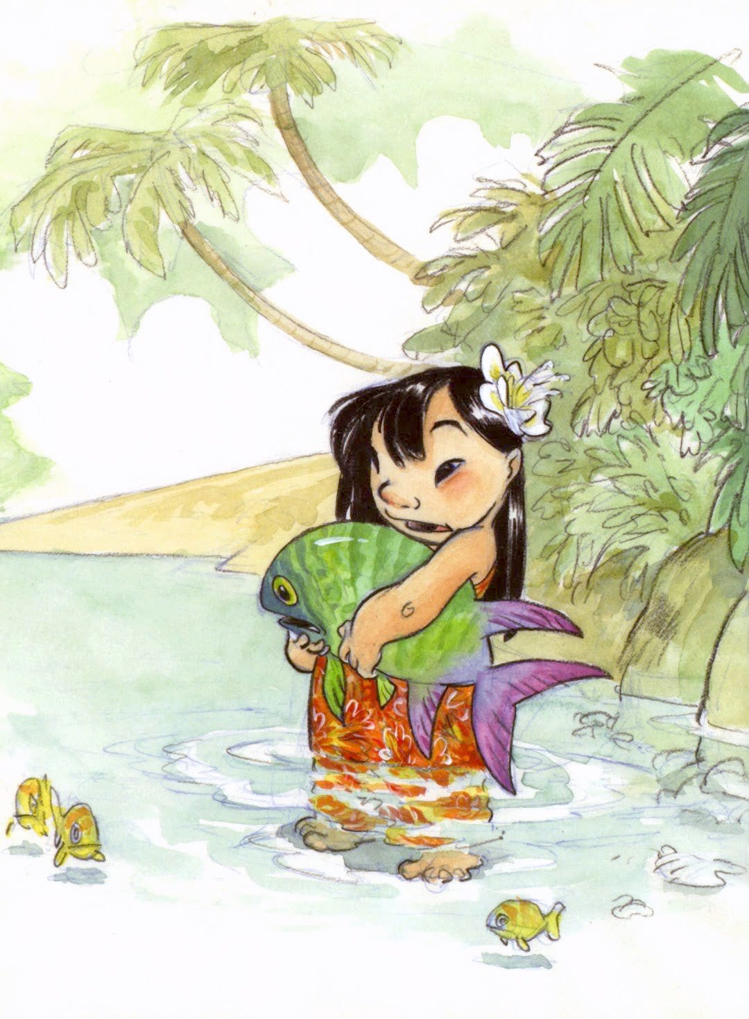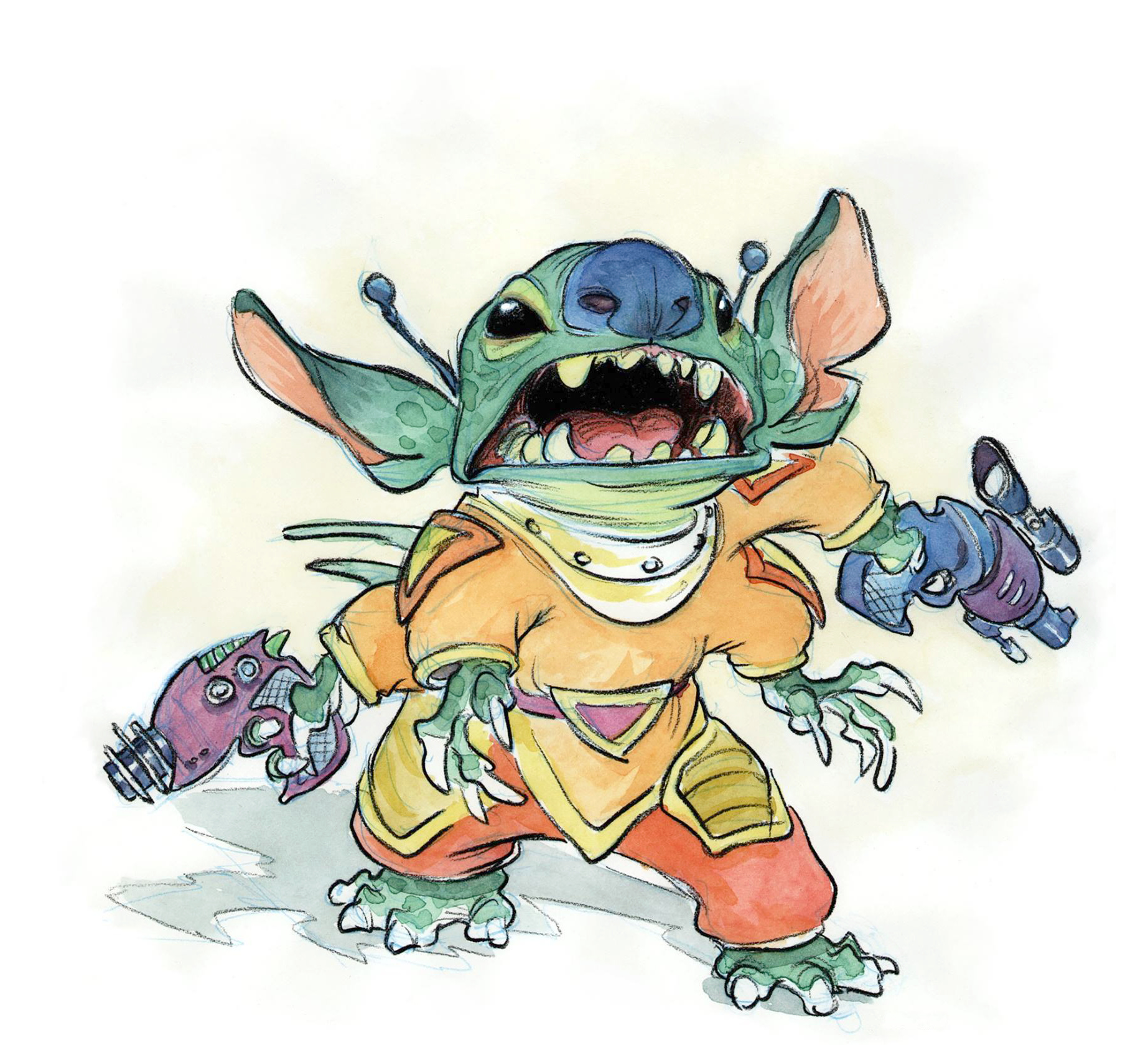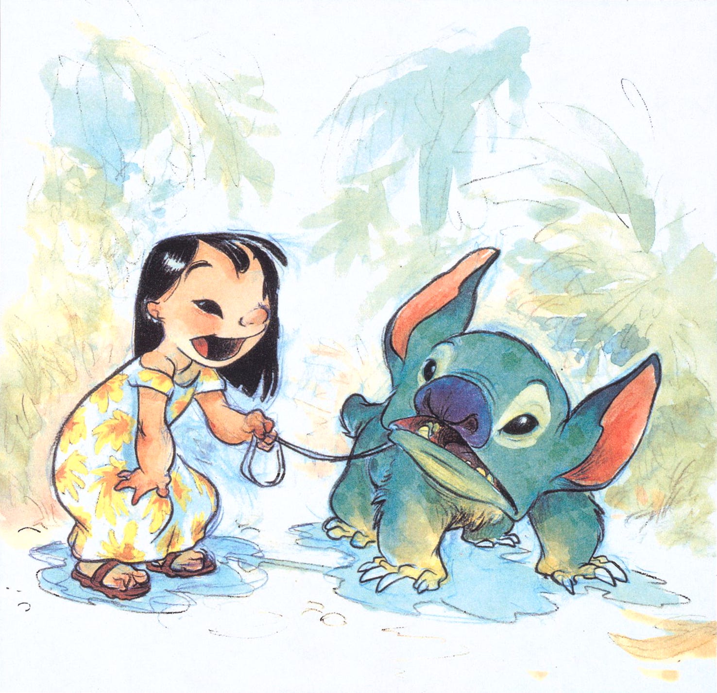 Very early concept art by Chris Sanders (1962–) for Lilo & Stitch