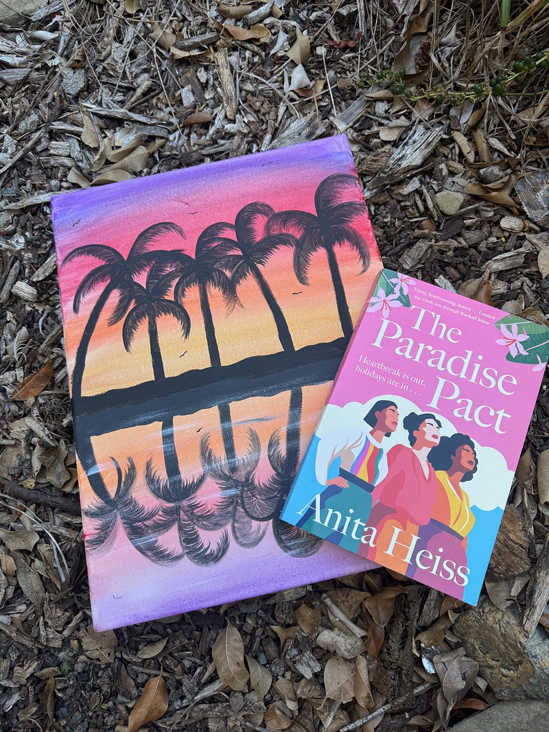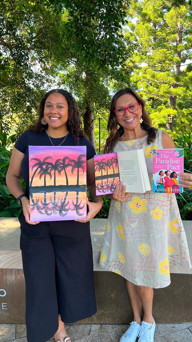 Nothing gave me more joy than to open the cover of my new book The Paradise Pact and see the beautiful artwork by my tidda and colleague Ashanti Berry. I spotted her painting at work in the Aboriginal and Torres Strait Islander Studies Unit at UQ last year, and I knew immediately I wanted to share her talent and her palm trees with my readers.