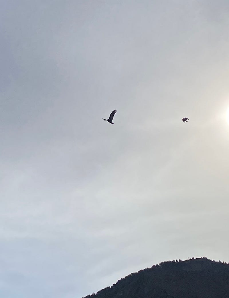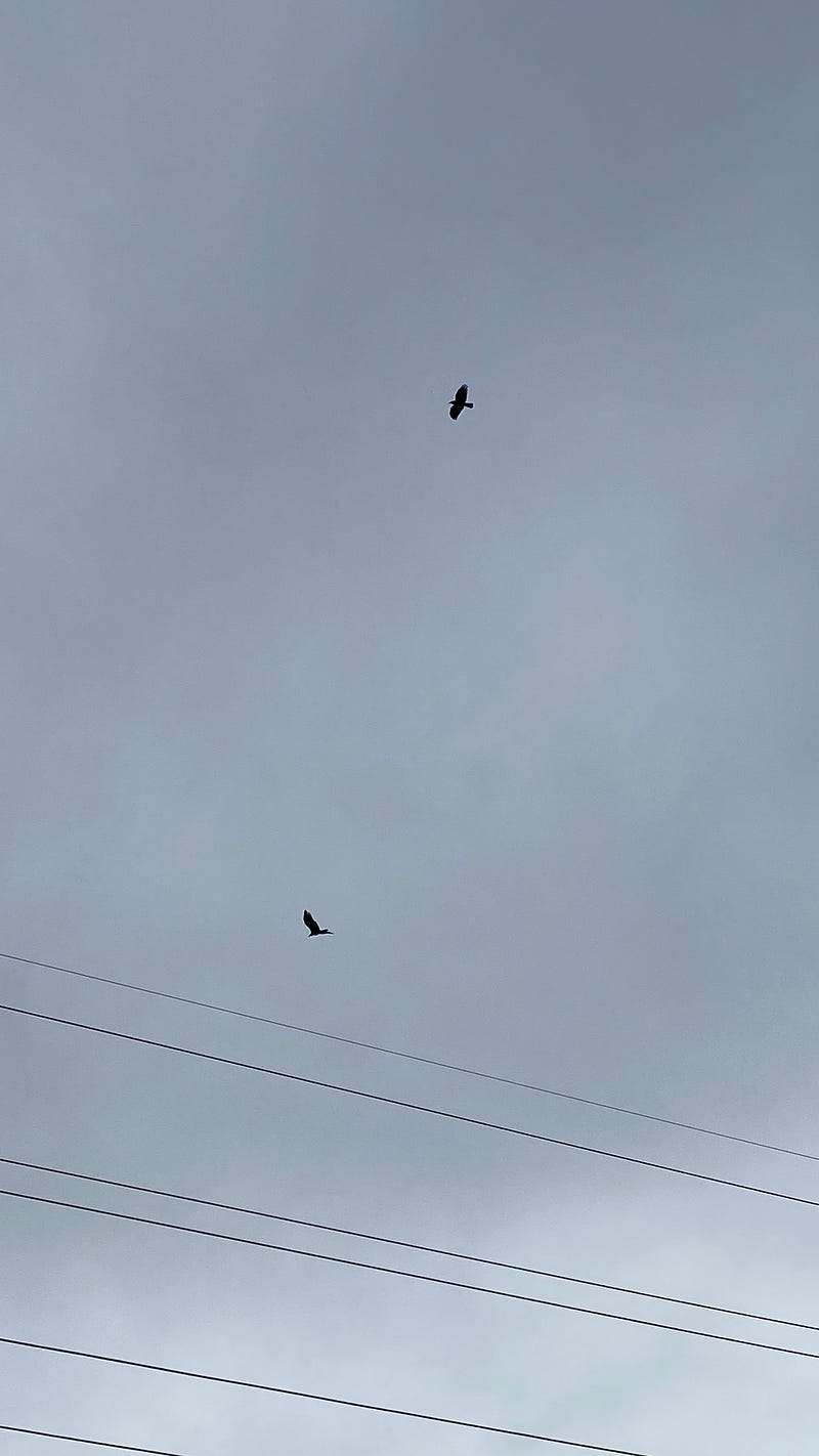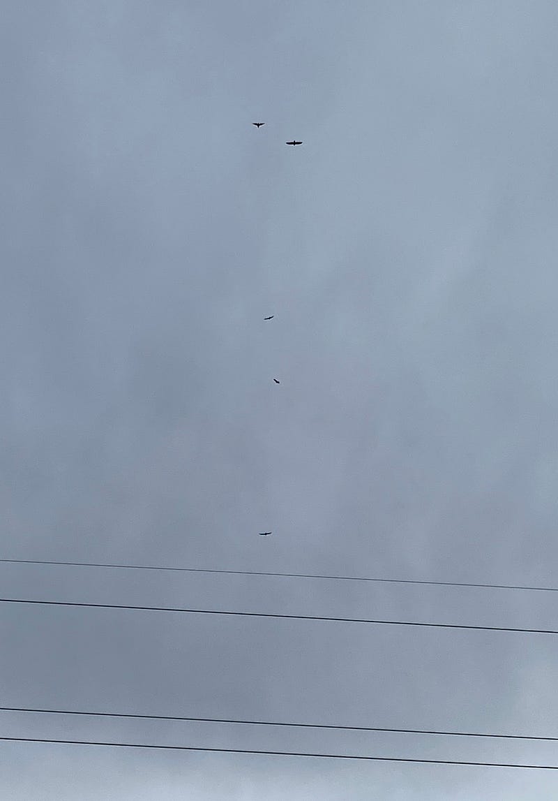 The crows couldn’t let the turkey vultures ride that low on their thermals without a little harassment.