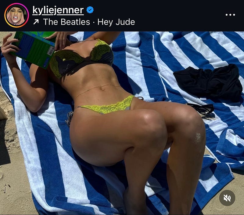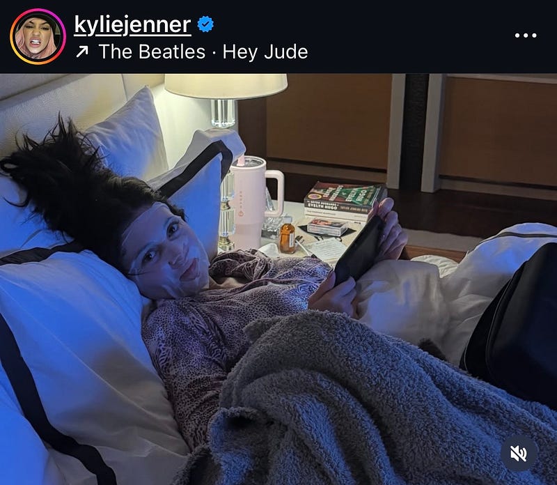 In Kylie Jenner’s post from her vacation with Timmé, three novels are present: Emma Cline’s The Guest, The Seven Husbands of Evelyn Hugo, and…??? Is it Ferrante??? Title looks too long for anything in the My Brilliant Friend series, but it’s definitely Europa Editions…