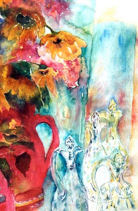 A quick note…A painting in watercolor that I must have done 20 years ago. Of course it isn’t really finished but I love the colors. Sometimes you just have to post a pretty picture because the world is not what you would like it to be. Every time a boat is blown up I think of the people on the boat and that we aren’t sure they are even drug running. Human beings.
