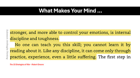 This concept is central to behavioural economics. Our minds are weaker than our emotions, and true strength arises only through practice, experience, and even a little suffering (as emphasised in ‘33 Strategies of War’ and Stoic philosophy).