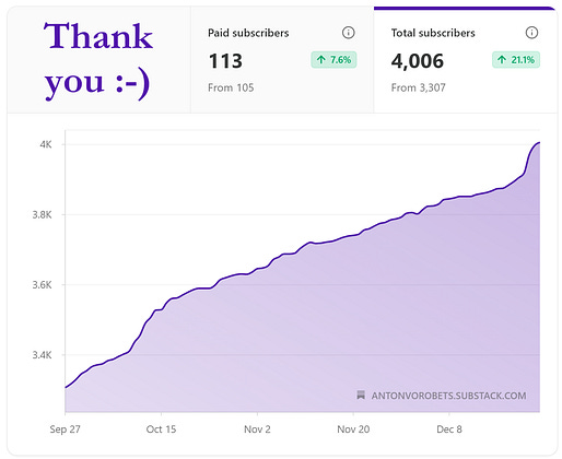 As a nice Christmas present, it just hit more than 4000 subscribers.