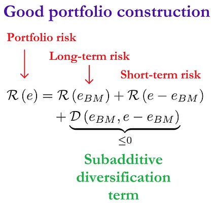 The equation below decomposes a portfolio’s risk into long-term, short-term and diversification risks.