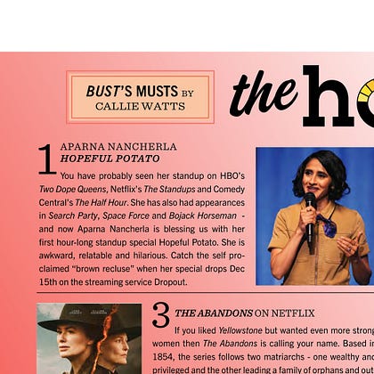Thank you, Bust Magazine, for the shiny sparkle!! HOPEFUL POTATO drops today at 4pm PST / 7pm EST on dropout.tv!!!