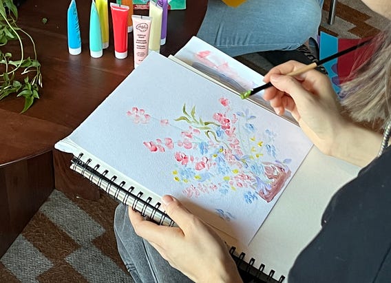 A nurse who attended my workshop this weekend shared how happy she was about the opportunity to share space with other creatives to make art, given how difficult it can be for her to find the time for creativity. She also mentioned that the workshop inspired her to continue prioritizing her passions outside of work. I haven’t been able to stop thinking about that interaction and what it could look like for me to pursue hosting these gatherings regularly, and with more resources. This is one of the acrylic drawings she started at the workshop, she is so talented.