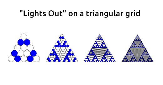 Even though the game “Lights Out” can be reduced to a linear algebra problem, it gives rise to some surprisingly intricate patterns.