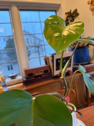 Is poetic the right word to describe the feeling of coming home from a nice long break and finding a new leaf on a plant just as the post holiday energy has me thinking of turning over a new leaf? Springy and green in the frigid winter weather, ready to accept my fuller midlife body and creativity?