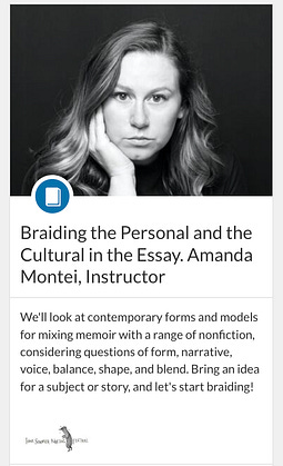 Eeek! Very excited. Today I took a leap and made an investment in my art by enrolling myself in a four-week writing workshop, led by the incredible Amanda Montei.