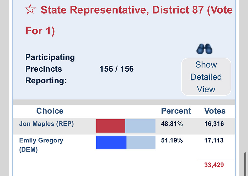 With a margin of 797 votes, as of right now, we flipped Florida house District 87!