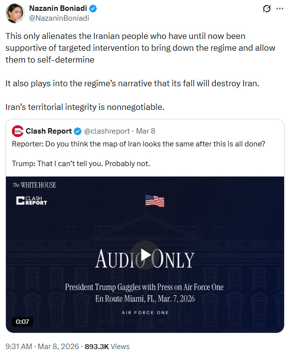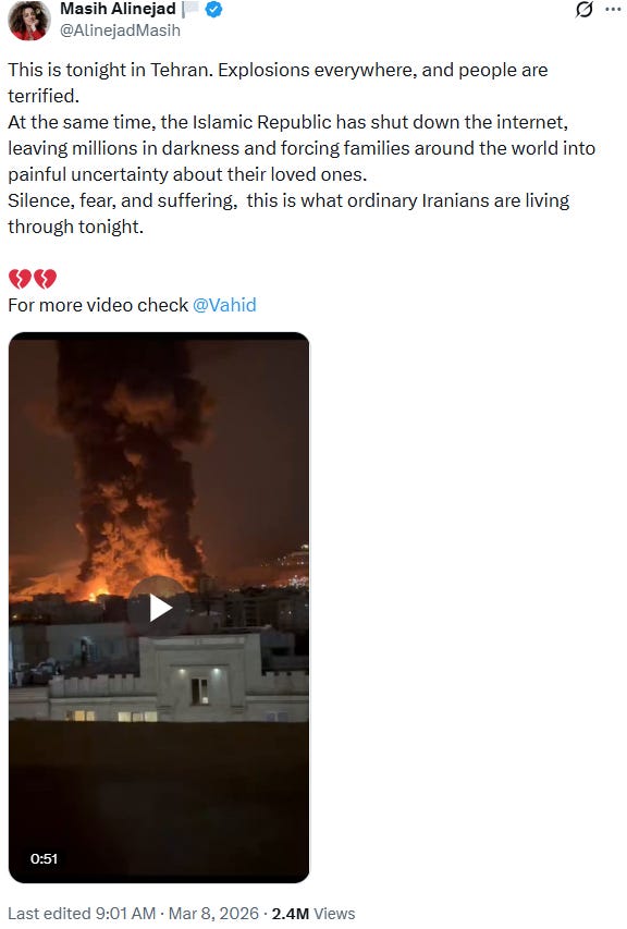 As the war goes on and their own country and people get destroyed and massacred, Iran's "human rights" activists will try to distance themselves from it - as they're already starting to do š- but, make no mistake, this is the very logical consequence of their own actions and they couldn't not have known.