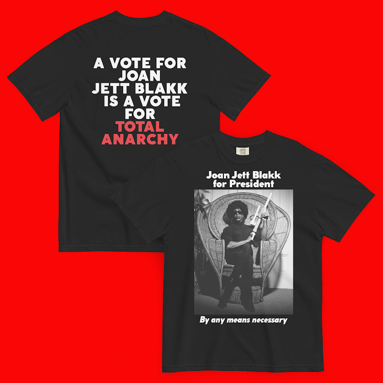 Joan had a major stroke last year- to support her need for lifelong care, her iconic 1992 presidential campaign poster has been re-released as a limited edition t-shirt. I got one!