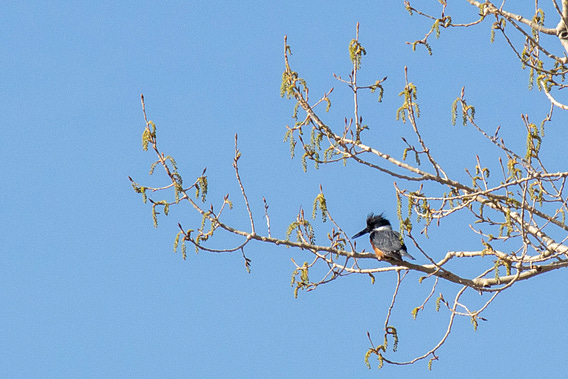 Another highlight of birdwatching yesterday was this female Belted Kingfisher who spent the morning flitting up and down a small stretch of the South Platte, perching on branches for minutes at a time, gazing down and searching, then occasionally plunging into the river in pursuit of small fry.