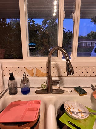 Before I started washing dishes, I cracked open the windows so I could hear them come up the driveway. And five minutes later, at 8:57pm, they did. Sweaty, laughing, a baseball bat sticking out of my oldest's backpack.