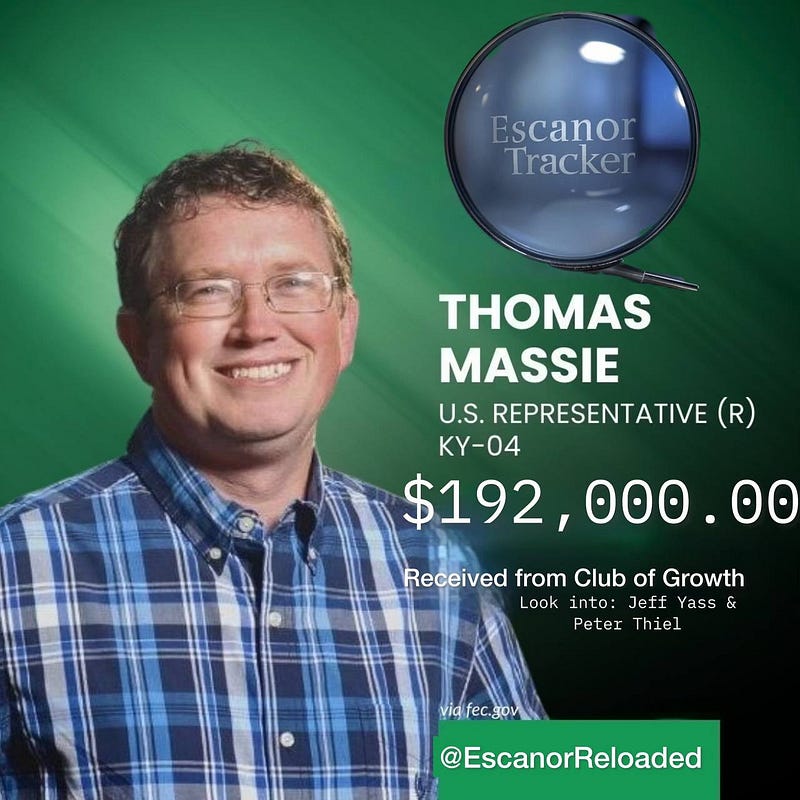 Massie has taken $192,000 from Club for Growth, a Wall Street-backed influence machine.