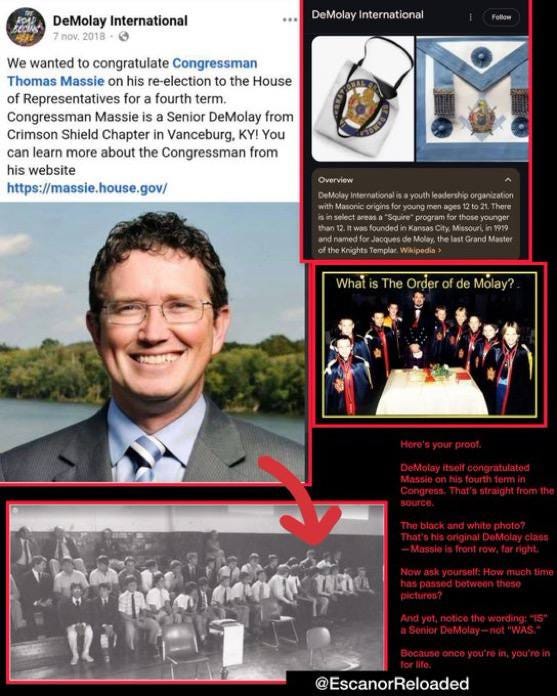 DeMolay itself congratulated Massie on his fourth term in Congress. That’s straight from the source.
