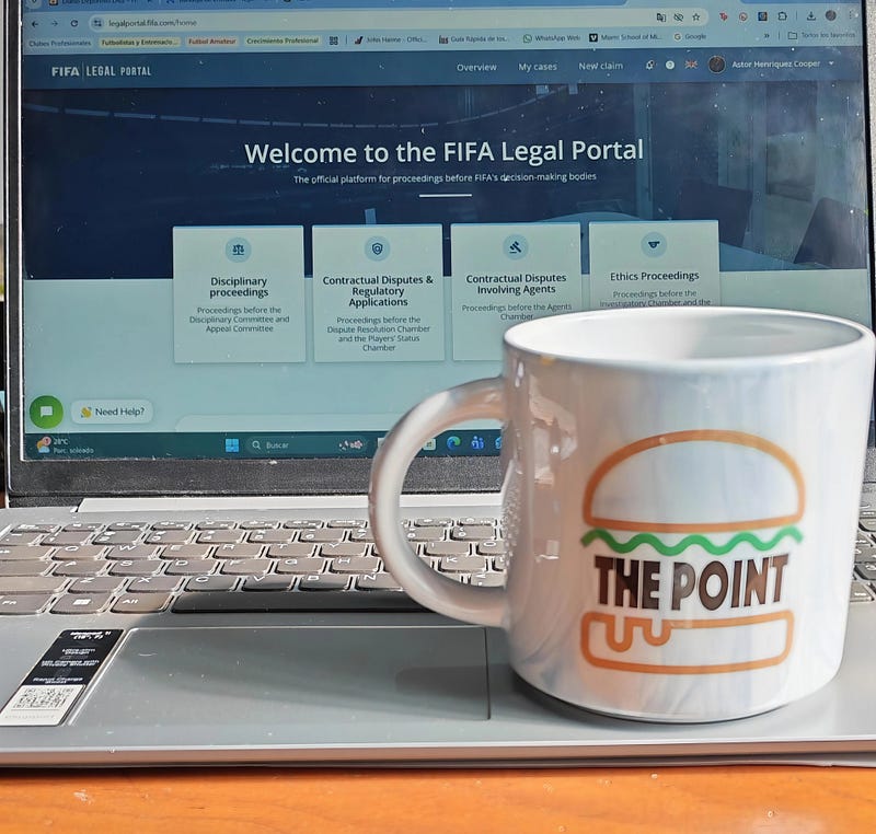 Afternoon coffee. FIFA Legal Portal open.