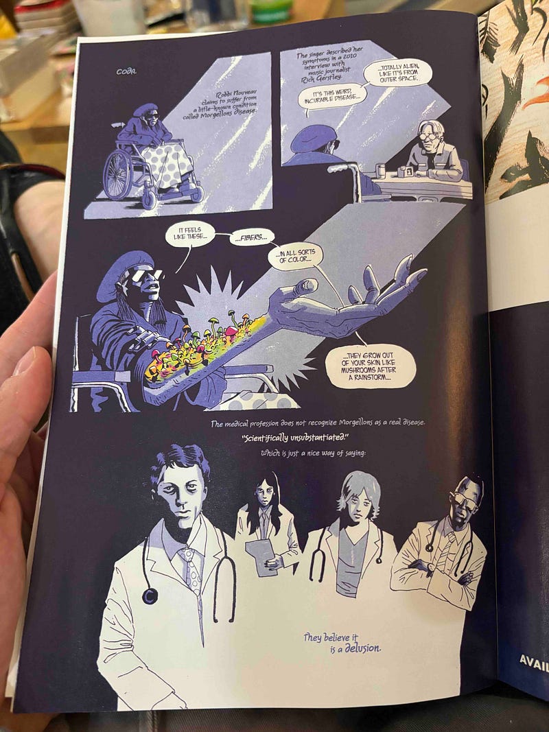 Finally, I adore Quinn & Chisholm’s use of interstitial pages. Benefiting from Chisholm’s deliberately varied art and color styles, they offer up thematically tangential passages that are largely self-sufficient while also providing readers opportunities to discover thematic connections on their own.