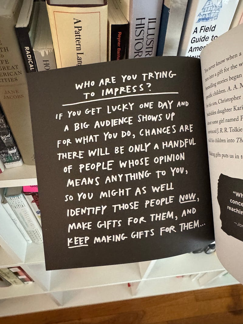 In STEAL LIKE AN ARTIST I mentioned keeping a “praise file” for when you’re bottomed out. When my book KEEP GOING came out I had a couple of friends who said, “This is your best book” and it meant more to me than anything else. Here’s a page from it that I stand behind:
