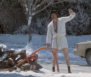 For all Cousin Eddy might be lacking, think of what he does have! He’s upbeat. He has a lust for life. He takes the world as it is. He may not be able to provide a lavish Christmas for his kids, but it’s obvious they’ve been cared for in some way— Ruby Sue’s eyes have been fixed, Rocky’s lip fungus is unidentified, which means he’s been to see a doctor, one daughter is in rehab sobering up, the other boy is in the circus. Everyone else in the movie — Clark, Margo, etc. — is judging, but not Eddy. He seems to judge no one. He’s loyal to his family. He loves his wife. He sees value in items other people discard. I expect he’s been through the fire — he mentions getting his metal plate replaced with plastic at the VA, which suggests he’s a veteran. Eddy has learned the comedy of survival. He is my Christmas idol.