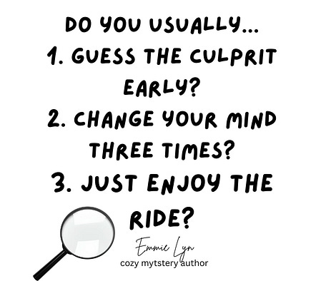 Me? I enjoy the ride of both writing and reading cozy mysteries.