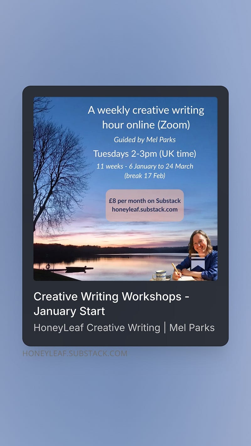 Next Tuesday 6 January, I'll be staring another season of weekly guided creative writing hours on Zoom for paid subscribers.