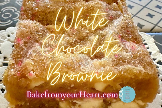 Pretty Pink Sprinkles White Chocolate Brownie. These yummy brownies give off birthday cake vibes :) Visit bakefromyourheart.com for the recipe! Baked Goodness. Follow God and Bake from your Heart, Kendra