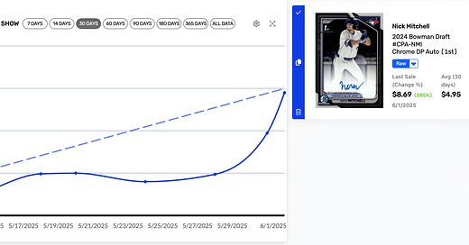 A few more names that are starting to separate themselves—not just on the field, but in the hobby as well. This week’s list is a mix of repeat risers, sneaky standouts, and under-the-radar arms who might not stay cheap for long.