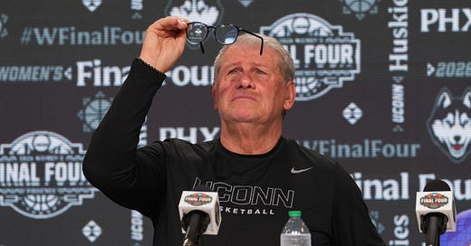 The BASKETBALL FEELINGS Sunday Essay is on the many interviews with athletes I’ve been doing recently, their glimpses into the contours of other people. Plus GenoAuriemma’s sore loser sleight of Dawn Staley (and shortsighted doubling down), and the limits of seeing the world through other people.