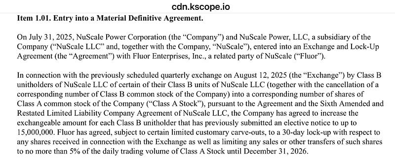 $FLR 持有的部分 $SMR B 單位將轉換為 A 股股票,同時對其出售行為設下嚴格時間與數量限制: