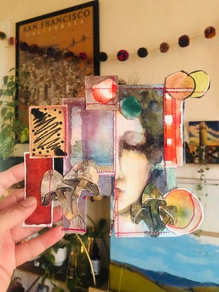 another stitched collage, I’m really enjoying using up small watercolor swatches this way.