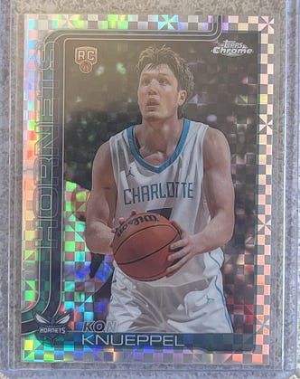 We bought our first 2025 Topps Chrome Basketball card today! It’s a Kon Knueppel X-Fractor. Looks like it’s worth around $800 as a PSA 10.