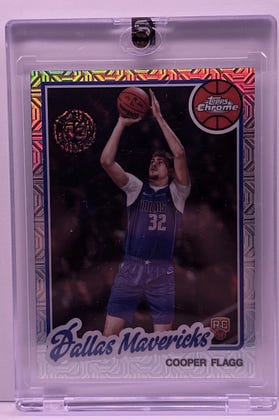 This time it’s Cooper Flagg and this card is currently worth about $700 as a PSA 10.
