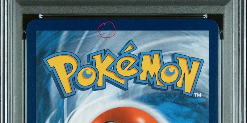 The flaws included borderline centering (estimated at 55/45 which is technically in range) and minor print issues/marks on the back.