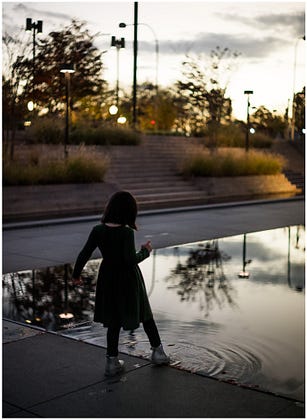Evan dipping her toe into a reflecting pool in Washington DC on the eve of the election.