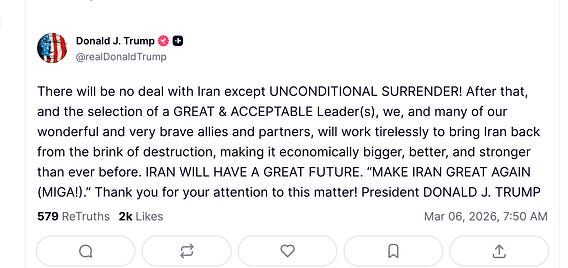 The idea of unconditional surrender, or the belief that we have allies in this conflict?